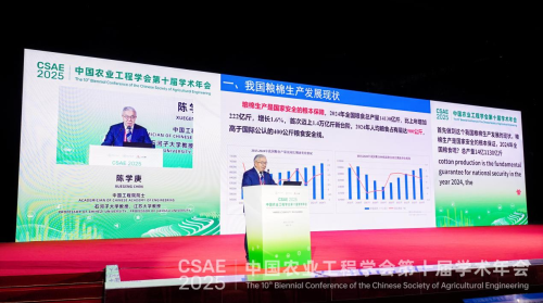 他表示,这次的学术年会体现了农业工程多学科交叉融合的属性。中国农业工程学会较早成立了数字乡村工程专业委员会,2024年成立了大数据专业委员会,2025年又相继新成立了人工智能与农业机器人专业委员会,新能源农业装备工程专业委员会等,体现了学会的前瞻性布局;作为学术组织,已经成为农业工程界的重要引领力量。