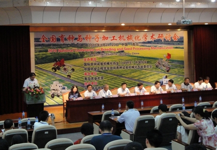 由国际田间试验机械化协会中国分会、中国农业工程学会田间育种试验机械化专业委员会主办,青岛农业大学承办的“全国育种与种子加工机械化研讨会”于8月21~22日在美丽的海滨城市青岛召开。中国农业工程学会朱明理事长、农业部农业机械化管理司科教处姚春生处长、农业部农技中心种子行业处马志强处长、山东省农业机械化管理办公室纪检委韩永平书记,青岛农业大学李宝笃校长、宋希云副校长出席了会议。