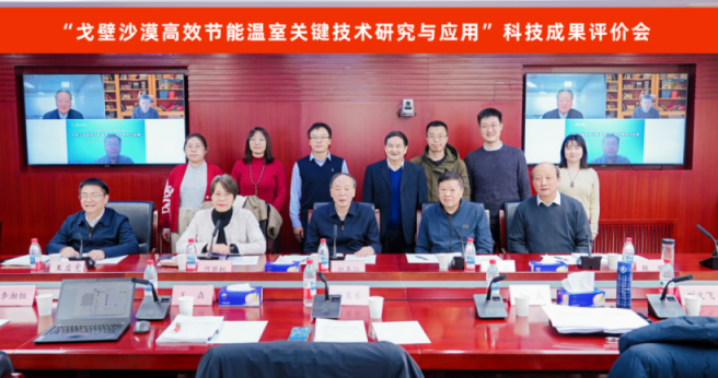 专家组认真听取了报告,仔细审阅了技术资料,并围绕创新点凝练、核心数据核实、国内外技术对比、应用场景创新与拓展等方面,提出了专业且具建设性的质询意见和完善建议,就土地利用率计算依据、温室最大内外温差、基质配比参数等关键问题与项目团队深入交流。最后,专家组针对成果的系统性、科学性、创造性、先进性、可行性和实用性等进行了综合评价,一致认为,该成果立足我国戈壁沙漠非耕地开发利用的国家需求,针对性破解了戈壁沙漠设施农业的系列技术难题,技术创新性强、实用性好,总体达到国际先进水平,其中温室主动蓄能调温技术达到国际领先水平。
