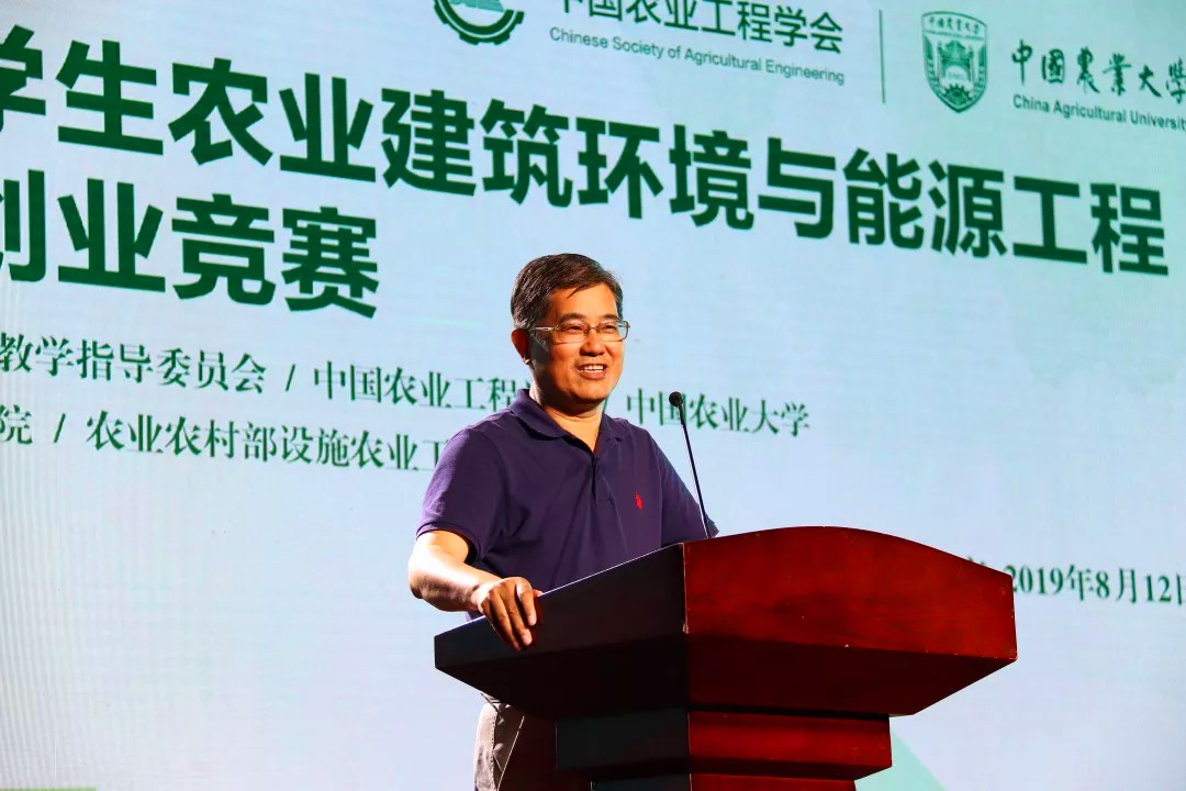 康绍忠院士在致辞中代表教育部高等学校农业工程类专业教学指导委员会对大赛的开幕表示祝贺。他表示,本次竞赛适逢新中国成立70周年,作为农业工程领域的一大盛会,农建创新竞赛有效的吸引与激发了同学们的创新创业意识,培养了创新创业能力以及协作能力。此外,还介绍了教育部教指委指导开展的各类学科创新创业竞赛,他表示,创新创业竞赛是大学教育的环节,也是为了将学校与企业联系更加紧密,希望评委老师秉持公平公正的原则,选出优秀的作品,希望参赛的大学生保持良好的心态,互相学习,赛出风格,赛出水平,取得理想成绩。